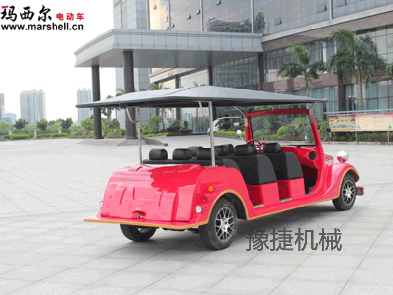 玛西尔电动老爷车是专为楼盘小区、旅游景区、公园、大型游乐场、封闭小区、校园、花园、度假村、别墅区、城市步行街、机场、港口、码头等开发的环保型乘用车辆,具有性能卓越、外形豪华气派、经典怀旧。外形新颖、内饰豪华精致、乘坐舒适安全的特点,是理想的场内电动观光车。