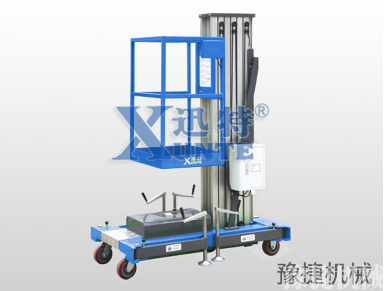 单桅铝合金升降平台:采用优质铝合金材料,具有造型美观、体积小、重量轻、升降平稳、安全可靠等优点。广泛用于工厂、宾馆、餐厅、车站、影剧院、展览馆等场所,是保养机具、油漆装修、调换灯具、电器、清洁保养等用途的理想安全伴侣。