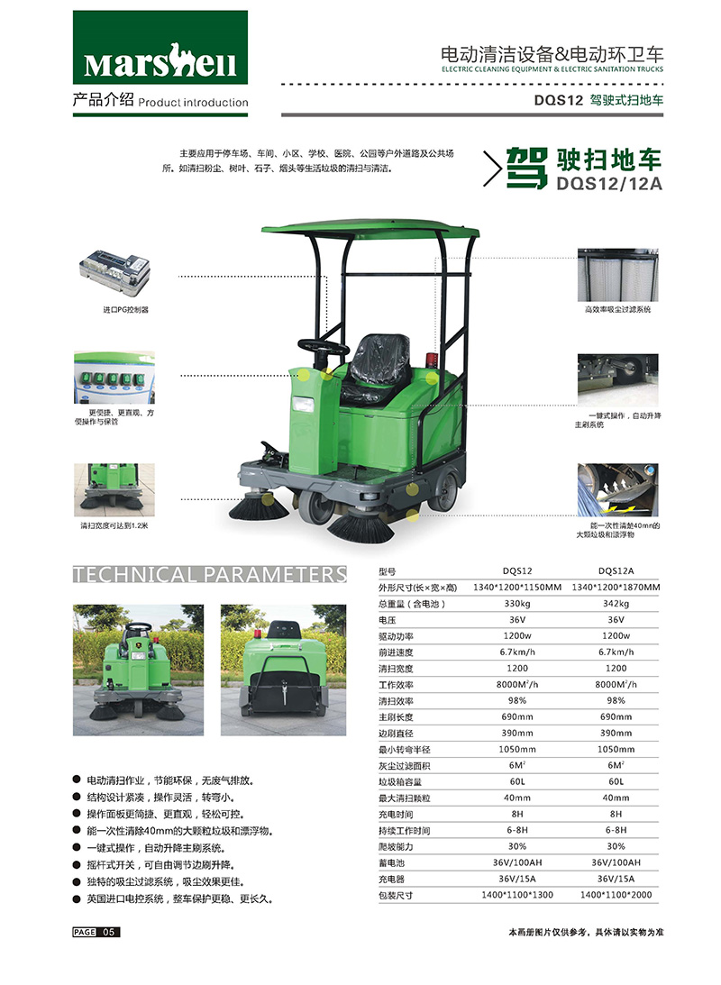 驾驶式电动扫地机(DQS12A)技术参数