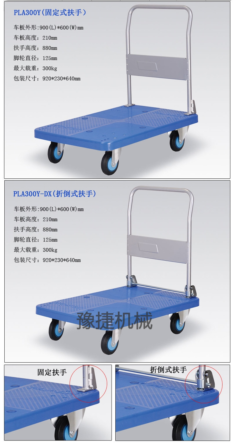 【华体会体育-华体会体育·(中国)官方网站 】平板手推车由塑料车板、粉体涂装扶手(可折倒、固定)、静脚轮(尼龙支架、铁板支架)等组成。