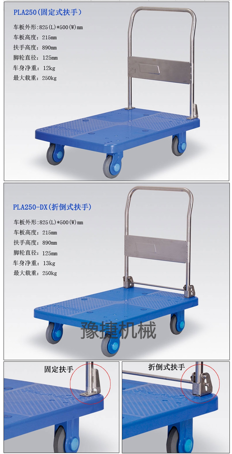 【华体会体育-华体会体育·(中国)官方网站 】平板手推车由塑料车板、粉体涂装扶手(可折倒、固定)、静脚轮(尼龙支架、铁板支架)等组成。