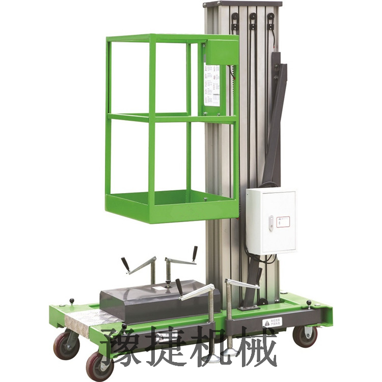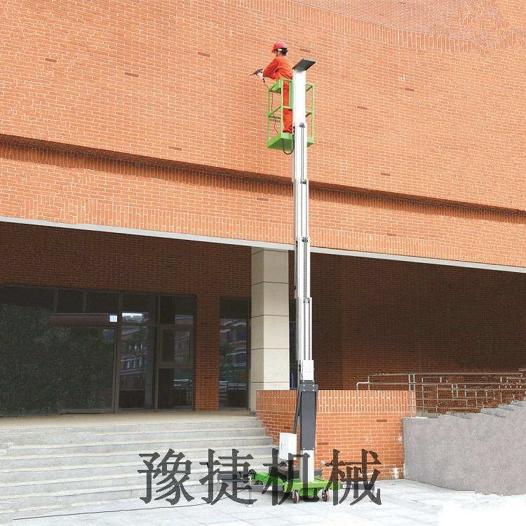 单桅铝合金升降平台:采用优质铝合金材料,具有造型美观、体积小、重量轻、升降平稳、安全可靠等优点。广泛用于工厂、宾馆、餐厅、车站、影剧院、展览馆等场所,是保养机具、油漆装修、调换灯具、电器、清洁保养等用途的理想安全伴侣。